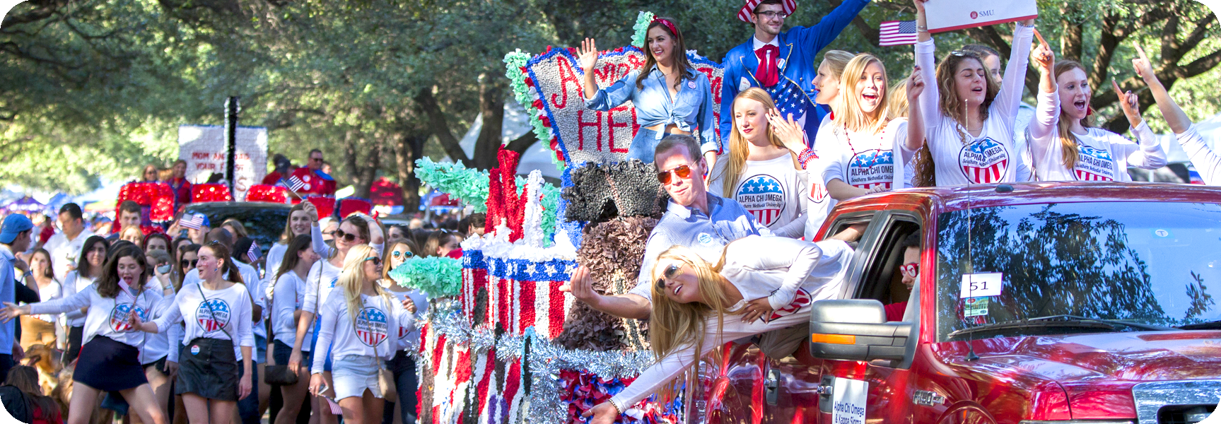 Pony pride lasts all year long and shines the brightest during Homecoming. Students compete through their organizations in a variety of activities – from painting wooden Peruna stencils to participating in service activities – to win the day. Alumni come from across the globe and down the street to relive the magic. Families from around the neighborhood surrounding SMU come to watch floats and vintage cars pass by in our Homecoming parade.