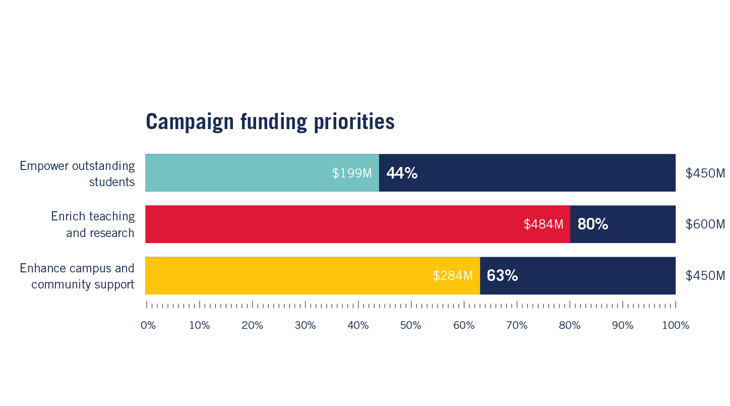 Donor generosity drives the progress of SMU Ignited: Boldly Shaping Tomorrow toward our $1.5 billion goal. Over the last two years, substantial momentum has been generated by many historic gifts to strengthen the University and the impact that the Mustang community has on the world.