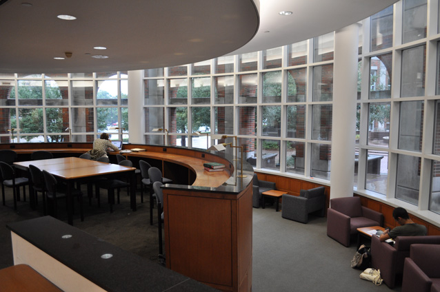 This skylight-filled room is filled with comfortable furniture and reading areas, where students can work on projects in a more social and collaborative space than traditional "Quiet, please!" library spaces. Brown bag performances are held here throughout the year. Taubman Atrium is also home of the Meadows coffee cart, where students can purchase freshly-brewed Starbucks coffee and other refreshments.